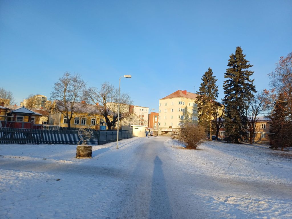 The next stop was Sibelius Park (Sibeliuspuisto), which in 1811 was the last remaining square free from buildings in the fifth district, named Aleksanterintori. Then it was used for horse trading and became known as Hevostori. Only in the 1930s the square started its planting. In honor of the 88th birthday of composer Jean Sibelius in 1953, the park was renamed to Sibelius Park. In the 1950s, the playground was located in the park as it is today. Also, on the southern edge of the park is a transformer station building. (Porin kaupungin museopalvelut, 2024)