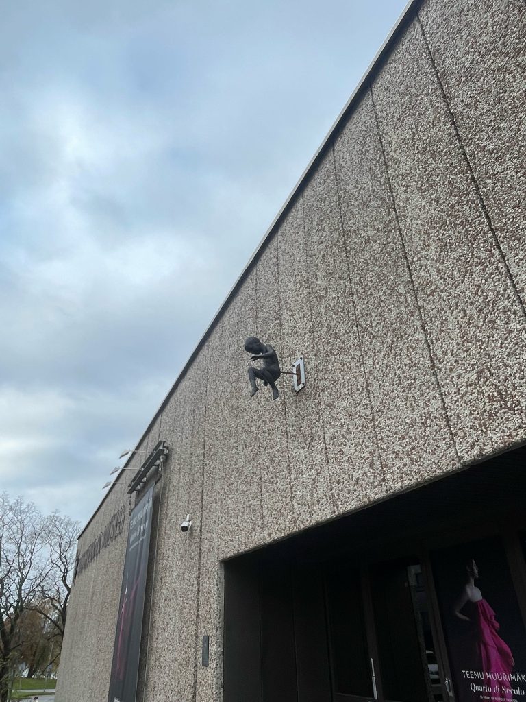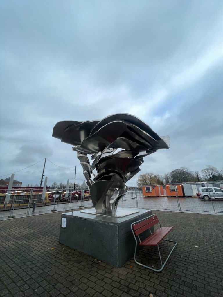 Harry Kivijärven tekemä vuonna 1987 pystytetty Lokki-veistos löytyi heti taidemuseon edustalta, ja se olikin teemareitin toinen kohta. Suoraan sanottuna en ole oikeastaan ikinä kiinnittänyt kyseiseen veistokseen huomiota yhtään. Nyt, kun sitä tarkasteli, oli se jollain tavalla mielenkiintoinen. Näen sen yksinkertaisen kuvastuksen lokista selkeästi, sillä tuolla tavalla itse piirsin lapsena linnun, joten veistos herätti nostalgian tunnetta.